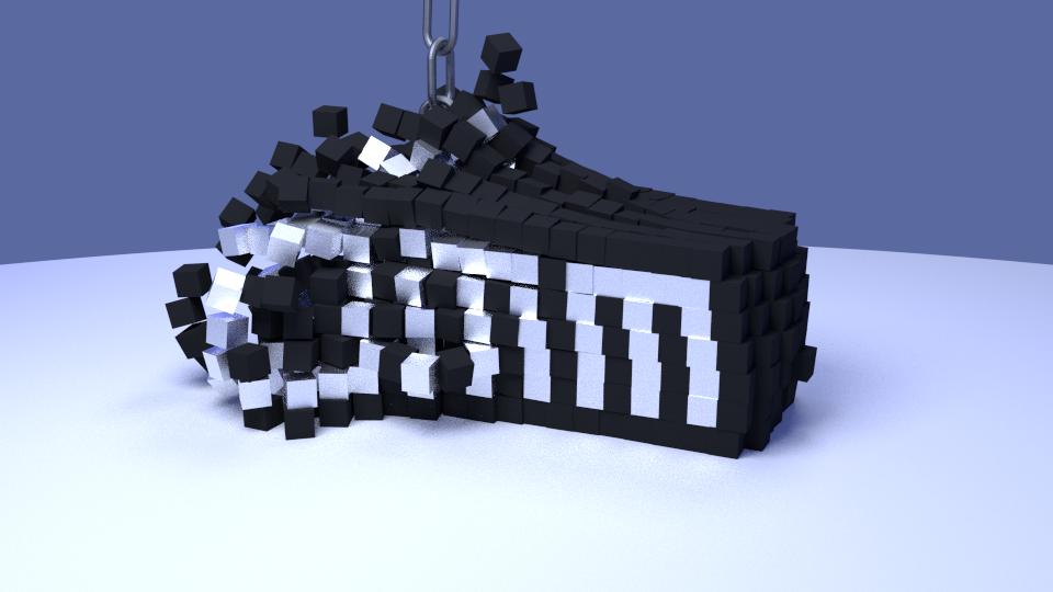This is frame taken from an animation of a wrecking ball destroying the OMM logo, really fun to create although took quite a bit of time.