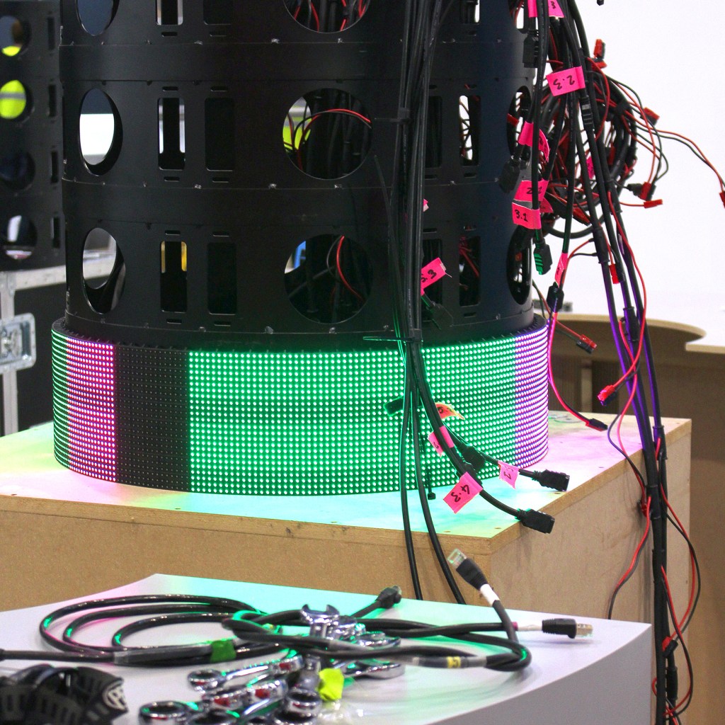 Lighting up the exhibition hall at the PPMA show, with a giant LED Cylinder screen. Custom 3D content and motion graphics.
